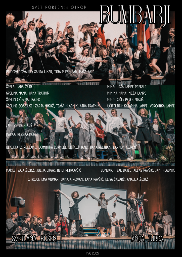 V soboto, 10. maja, Vas ob 10.30 vabimo v Dvorano prve slovenske vlade na predstavo Bumbarji v izvedbi Osnovne šole Col.