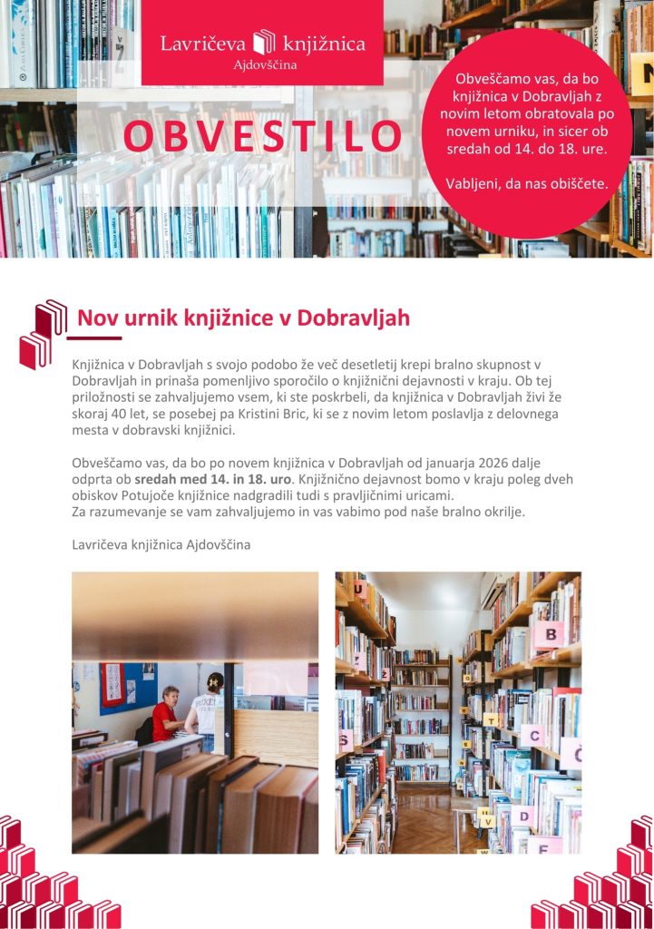 Nov urnik izposojevališča Dobravlje